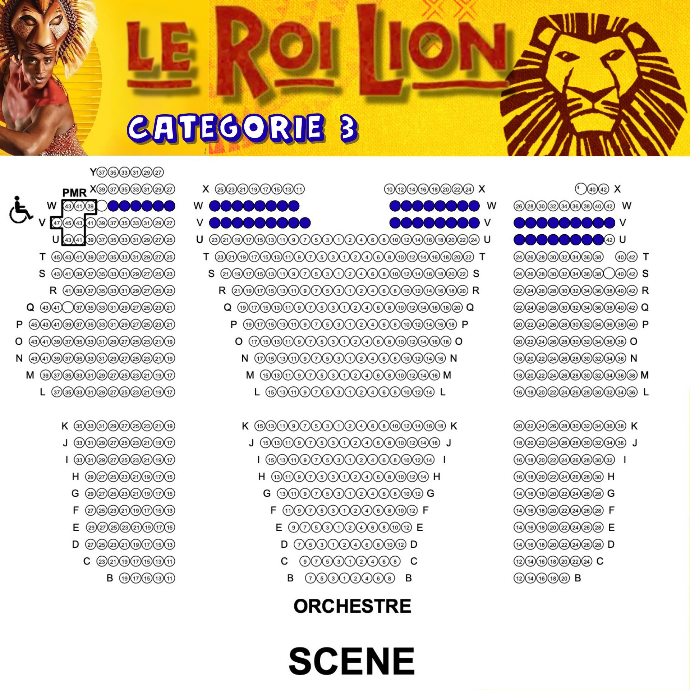 Places catégorie 3 - Le théâtre étant petit, les places réservées sont très visibles.