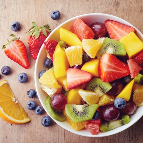 Part de flan ou Fromage blanc et son coulis du moment ou Salade de fruits